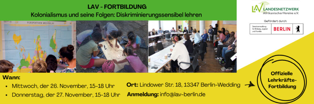 wir laden Sie herzlich zur Fortbildung des Landesnetzwerks Afrikanischer Vereine (LAV) e.V. ein.